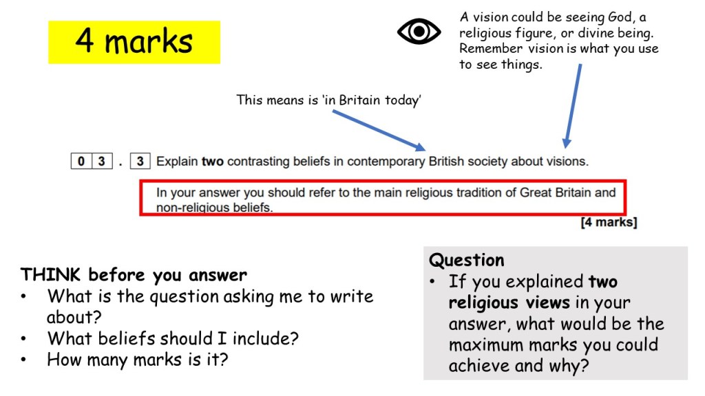 Let’s imagine a lesson on Christian attitudes towards divorce. Pre-written questions might look something like this…